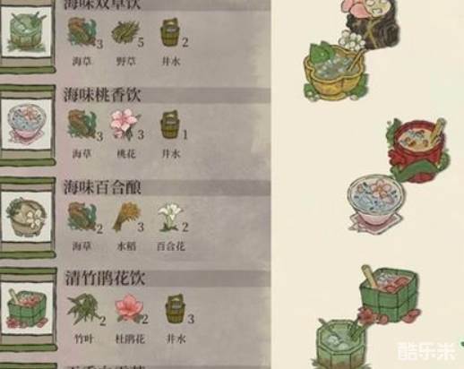 江南百景图五周年活动“龙宫游园会”正在进行中,玩家可以消耗材料制作不同冰饮,在制作三种普通冰饮之后即可解锁活动系列果饮,玩法轻松休闲。下面酷乐米小编带来龙宫活动冰饮配方大全,各位来看看吧。