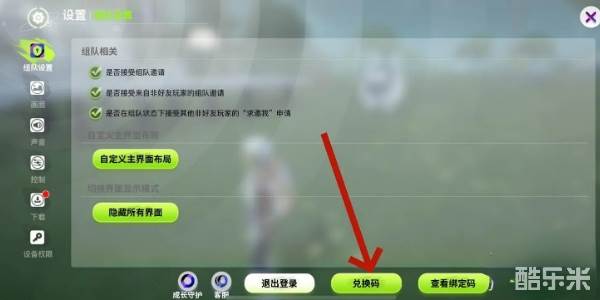 3.进入设置界面后,点击下方的兑换码选项。