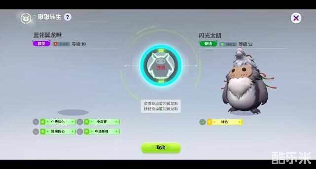 蓝翎翼龙啾(精英)+元太郎啾(普通)=蓝翎翼龙啾