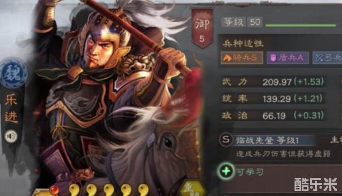 三国志战略版乐进作为稳定输出的武将,其自带战法临战先登拥有100%发动概率,但虚弱状态的副作用使其生存能力成为关键问题。下面和酷乐米小编一起来看看吧
