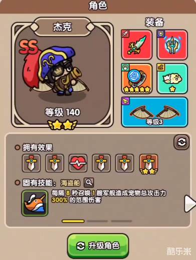 游戏里的英雄角色非常多,其中最推荐的就是杰克,这个英雄可以召唤军舰,军舰可以带来宠物总攻击力300%的伤害,在升级之后角色的能力会变得更加优秀,战斗的时候还可以利用自身的技能给对手带来眩晕,技术玩家可以优先使用这个角色战斗,随着后期培养角色的星级提升到二星以后,战斗力会变得更强。