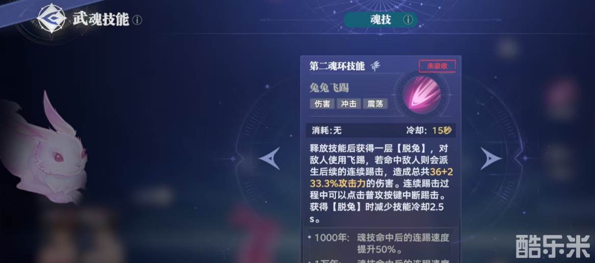 柔骨兔这种武魂对单体能造成高额的伤害,攻击的时候凭借极快的速度能够从四面八方对敌人进行攻击,在攻击对手时还可以把脱兔的层次给叠加起来。