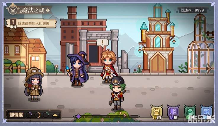 在[魔法之城]内,探索的过程中将会遇到不同的人物,触发剧情、任务、战斗及其他事件。触发结局后可读档回到过去的节点,通过不同的选择触发不同的后续事件。
