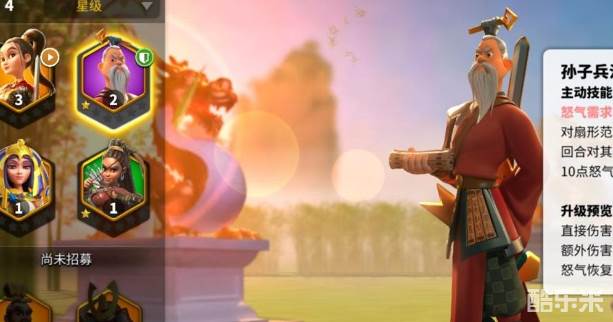 万国觉醒孙武的主动技能孙子兵法能对扇形范围内的敌人造成群体伤害,并且每命中一个目标还能回怒,打团战时简直就是永动机。下面和酷乐米小编一起来看看吧