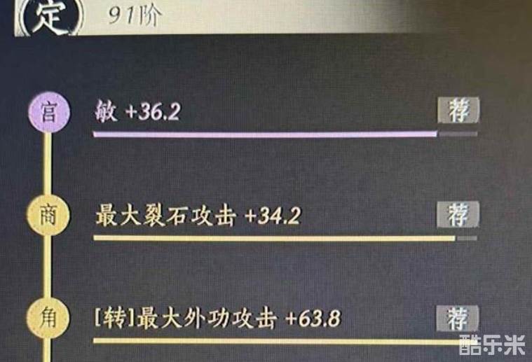 选择一件【91阶】的装备,使用【一键添加】,一条词条一条词条的去调律,如果【连续】出现两条【非本流派可用】且【不带推荐】的词条(参考图二),进行第二步(有材料建议自测最大连歪词条次数)