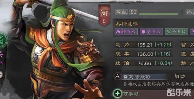 盾兵适性达到S级,配合自带战法江东猛虎的嘲讽效果,能稳稳扛住伤害。单练的核心思路是利用他的高统率成长和反击能力,搭配自愈或援助类战法减少战损,逐步提升等级后再挑战高级地。