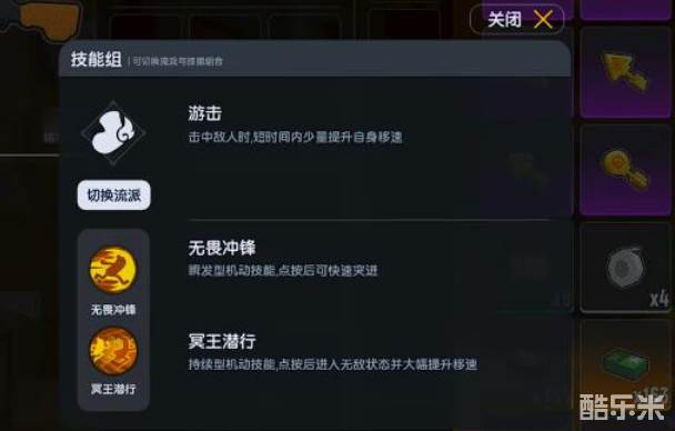 部分技能组有解锁的等级限制,比如游击流需要在升到14级才能选择,密探流要到22级才能选择,剩下两个流派没有等级限制。猛攻流的被动在让敌人倒地时生效,可以让自己的体力得到少量回复。使用跳跳炸弹技能可以扔出炸弹造成小范围的爆炸,可以存储两个炸弹再使用。