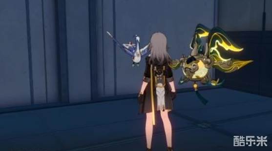 角色落地之后转身可以看到一扇通往其他区域的紫色传送门,在这上紫色传送门的背后就可以抓到一只金色的若虫。抓完之后回头并顺着长廊一直往前跑,在中半段左拉视角就可以看到一把插在盾牌中的蓝色长矛,操控角色将盾牌打掉之后并利用回溯功能,将断裂的蓝色长毛拼接成原状。拼好之后靠近长毛并点一下屏幕中提示的尝试抓住它选项,随后在长毛的正下方就会掉了一个灰色战利箱。