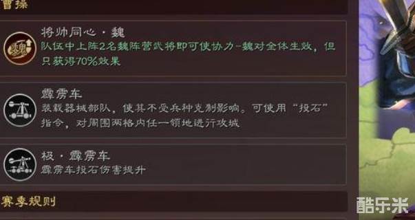 三国志战略版曹操作为核心武将,搭配唇枪舌战战法能够发挥极强的控场与辅助能力。下面和酷乐米小编一起来看看吧