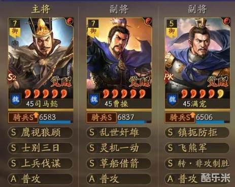 建议选择司马懿作为主将,搭配曹操或满宠提供保护,再配一个高智力辅助,比如左慈或郝昭。战法方面,司马懿必带士别三日和用武通神,这两个技能能最大化他的后期伤害,同时提供一定的生存能力。队友可以带锋矢阵或抚辑军民来增强减伤,确保队伍能撑到后期。