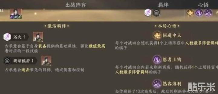 然后只需要一张方承意即可,这时候需要我们无脑拉到9级,然后找到一张方承意,其余全部上无关紧要的卡(推荐五费卡,因为能帮助自己锁血),让自己阵容只能够开出方承意的单个“浴火”羁绊。