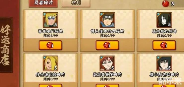 成功解锁夺宝商店后,也要在商店中选择性价比更高的商品。如果是PVP玩家,首选晓大蛇丸碎片,其蛇系技能组合在决斗场压制力极强。而PVE玩家,则推荐兑换究忍具提升战力,比如传说品质的草薙剑,就能大幅增强普攻流忍者强度。当遇到许愿宝库这类联动活动时,就要提前把高招券都保留下来,这样就能有更多的抽奖次数,而且抽奖保底出的S忍碎片如须佐鼬,也就有更大的概率可以集齐。