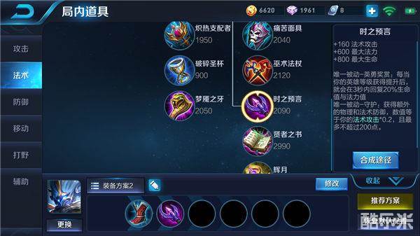 前期钟馗比较缺蓝,因为自身技能前期比较短板,所以很容易被敌人攻击到,有了时之预言之后,钟馗每次升级都会为自己增加一定百分比的生命值以及法力值,为钟馗弥补前期续航能力不足的问题,并且被动效果还可以根据钟馗的法术强度来为自身增加物理防御和法术防御,让钟馗在前期以及中期拥有超高生存能力的同时,也可以打出极为不俗的伤害。