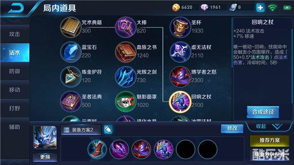 回响之杖能够提升钟馗的移动速度,让钟馗在中期的灵活性显著提高,并且增加的高额法术攻击也可以让钟馗的技能打出超高的伤害,在中期团战时,更是能够借助回响之杖的被动效果对小范围内的敌人造成极为不俗的伤害,因为回响之杖的被动效果,当钟馗的技能攻击到敌方单位时,会生成一个小范围的法术爆炸,使敌人受到一定百分比的法术伤害,在极大程度上能够帮助钟馗快速击杀对手。