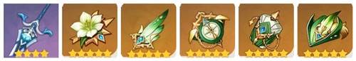 早柚的机制跟班尼特很类似,1命才能开始发挥她的作用,不然限制颇多,主打利用大招打扩散、恢复效果,因此使用元素充能的祭礼大剑搭配4风套元素精通提高恢复跟扩散伤害会更优秀;