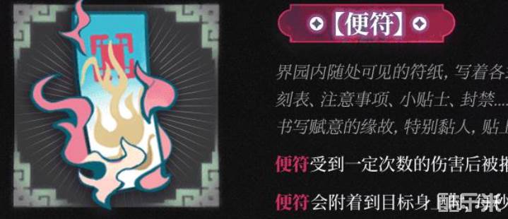 界园内随处可见的符纸,写着各式各样的信息:时刻表、注意事项、小贴士、封禁…或许是由人制作书写赋意的缘故,特别粘人,贴上了就不愿离开。
