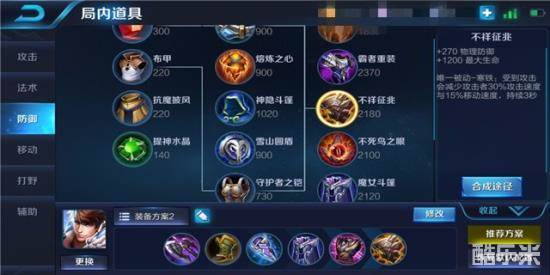 解析:痛苦面具的被动折磨和附加的法术穿透,保证了诸葛亮在面对敌方前排坦克时候能够打出足量的伤害。极寒风暴提供的物理防御能保证他近身作战的扛伤能力,避免被对面射手秒杀。被动冰心可以降低敌人的攻击速度和移动速度,变相提升诸葛亮的灵活性和战场生存能力。