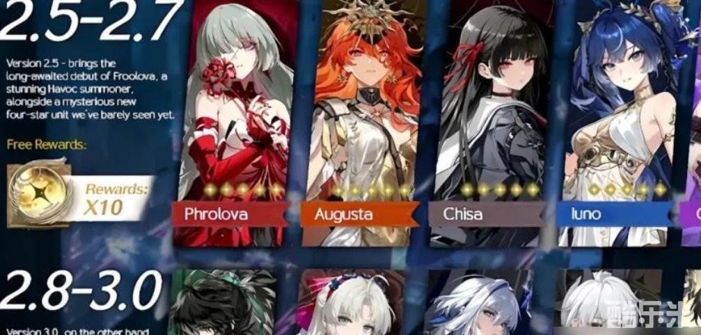 鸣潮2.5版本前瞻直播即将开启,届时除新角色弗洛洛技能实机亮相外,还会公布卡池复刻角色,目前已知洛可可、坎特蕾拉、布兰特将复刻。此外,2.5 - 2.8卡池7位新角色登场顺序已曝光,新四星角色也来了,这让不少玩家直呼星声不够用,下面和酷乐米小编一起来看看吧