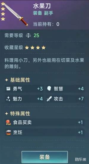 最头疼的是25级的水果刀,只能靠脸开投资时送的投资奖券,商会任务的商业宝箱,低级藏宝图获得的生锈铁箱,来获得。也可以用钻石在海市求购。