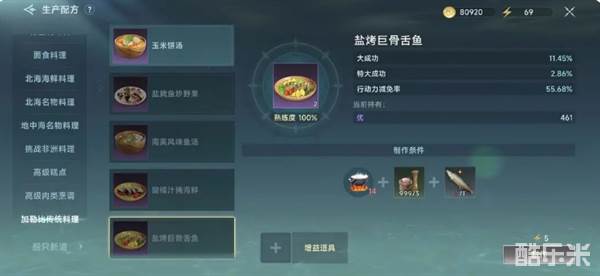 巨骨舌鱼,需要12级钓鱼稳定获取,10级钓鱼低概率获取,制作巨骨舌料理的材料+17体力。