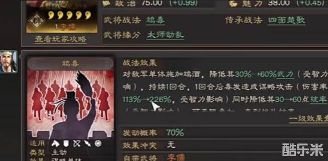 三国志战略版群雄阵营的智力型武将,虽然输出能力不算顶尖,但在破防和辅助方面非常出色。自带战法鸩毒能大幅削弱敌人的武力和统率,还能造成不错的谋略伤害,特别适合配合兵刃输出队伍。骑弓双S的兵种适应性让他能灵活搭配阵容,但要注意他的核心作用不是打伤害,而是为队友创造输出环境。下面和酷乐米小编一起来看看吧