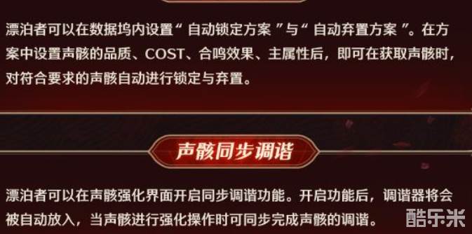 漂泊者可以在数据坞内设置“自动锁定方案”与“自动弃置方案”。在方案中设置声骸的品质、COST、合鸣效果、主属性后,即可在获取声骸时,对符合要求的声骸自动进行锁定与弃置。