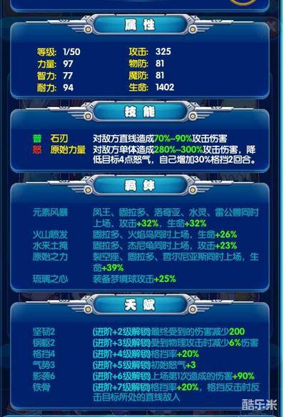 作为元素唯一可以瞄一眼的肉盾,古拉顿在肉盾中绝对是独树一帜的。他虽然有超越一般肉盾的极高格挡几率和海量的血,但缺少了肉盾所应有的高额防御羁绊,这就让他在没有格挡住关键技能时变得十分脆弱,充足的血量在对方高额暴击面前形同虚设。但是取而代之的是其无与伦比的输出能力,牺牲防御带来的三攻羁绊使得他的输出堪比单体狙杀核心,而这并不是他的主要输出手段,格挡反击才是他的核心竞争力,高额格挡让他几乎每次挨打都必定回敬对手,再加上进阶+7的反击直线,让它每一次反击都能打出一次普通攻击的伤害,所以试想一个一回合普攻七次的精灵你怕不怕?