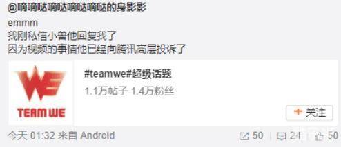 另外有粉丝爆料,因为视频的事情,小兽已向腾讯高层进行投诉了。