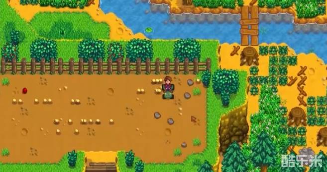 这种台阶式的地形,使得山顶农场有更多的装修选择。山顶农场地皮的总量还是可以的,而且连续性也还不错。但因为房子周围没有小水池,所以山顶农场是唯一需要修水井的农场。不然水壶灌水太麻烦了,没有洒水器之前种植效率严重降低。