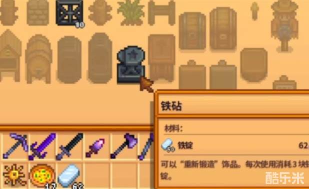 星露谷物语铁砧配方通过战斗精通获得,五十个铁锭可以制成一个铁砧。下面和酷乐米小编一起来看看吧