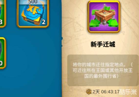 万国觉醒新手迁城道具非常珍贵,如果已经用掉还想移民到其他王国,需要了解移民的基本条件和替代方案。下面和酷乐米小编一起来看看吧