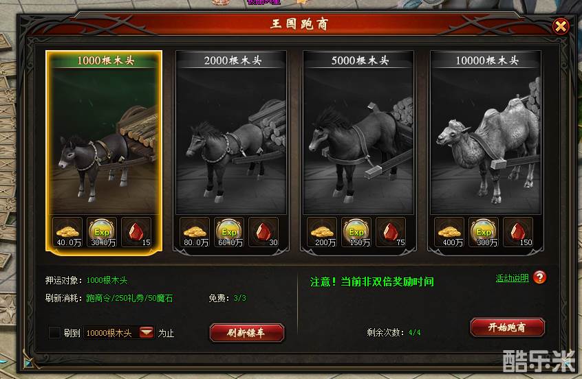 活动期间内,玩家护送任意镖车对象均可获得双倍奖励,镖车等级越高,奖励越高!