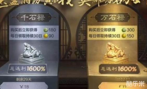 大月卡售价30元,小月卡售价18元。从性价比来看,大月卡更值得推荐,因为它能提供更丰厚的游戏资源奖励。购买月卡后,玩家每天都能领取固定数量的黄金和玉石,这些资源在游戏中非常重要。