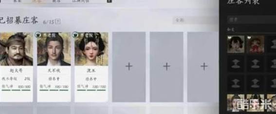2.招募流离失所的村民、周边相识的熟人,甚至是剧情里的各个人物都可以招募成庄客,并培养技能。
