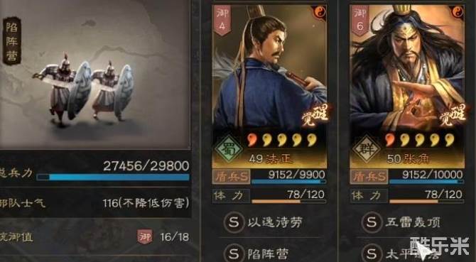 三国志战略版陷阵营是盾兵专属的S级兵种战法,核心效果为提升全军武力与统率属性,并在前三回合提供概率性急救治疗。下面和酷乐米小编一起来看看吧