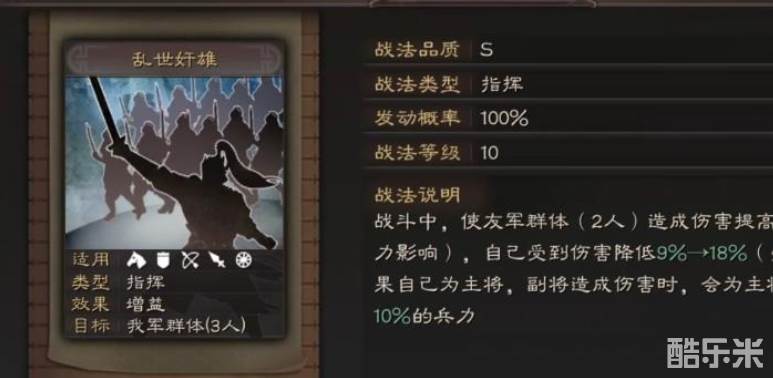 曹操自带战法乱世奸雄能为友军提供增伤效果并降低自身受到的伤害,主将时还能通过副将输出恢复兵力,具备较强的辅助与生存能力。孙坚则凭借江东猛虎提供群体伤害与嘲讽效果,适合承担伤害并触发反击类战法。两者组合时,曹操主将、孙坚副将的搭配能形成攻防一体的框架,剩余位置需根据战法联动和兵种适应性选择武将。