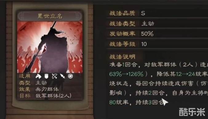 袁绍的自带战法累世立名具备兵刃与谋略双重伤害,同时降低敌方统率并附加灼烧状态,为主将时可提升全体统率。这一特性决定了其在阵容中的定位为半辅助半输出,需通过战法弥补其生存短板。夺魂摄魄能有效提升袁绍的攻防属性,文武双全则通过叠加属性进一步强化其输出与防御能力。若队伍缺乏治疗,可携带鲁莽提供洞察与自愈效果,避免因控制中断技能释放。