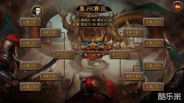 同时,每组32人进行四人一组的积分淘汰赛,每轮积分最高的两人晋级。四轮复赛后,每组诞生战神强者2人,共计16人进入决赛阶段。
