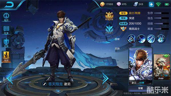 赵云是一个拥有强大位移能力和控制能力的战士英雄,多段位移让他能够自由的穿梭于战场,寻找合适机会gank或单杀敌人,是一名综合能力非常强的英雄。