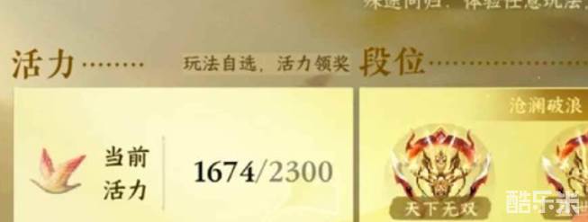逆水寒手游中活力值在手游中是非常重要的资源,无论是想获取装备、内功,还是赚取铜钱都与活力息息相关,活力有且只有3种方式获取,随着时间自然恢复、每日青崖书任务、活力丹。那么如何快速提升活力上限到2300呢?下面和酷乐米小编一起来看看吧