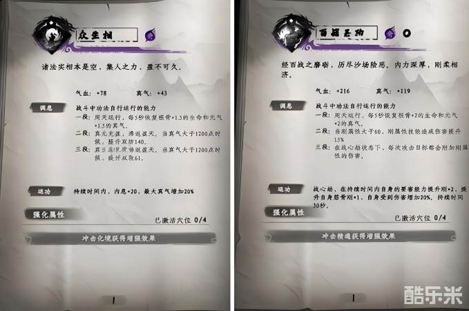 百战省工是一本比较适合玩家在游戏前期学习的基础心法,该心法有利于提升玩家的刚属性伤害,万法森罗则是一本能够提高玩家筋骨以及根骨的心法,修炼该心法以后,玩家所承受的伤害能够下降20%,追求生存的玩家比较适合去学习。