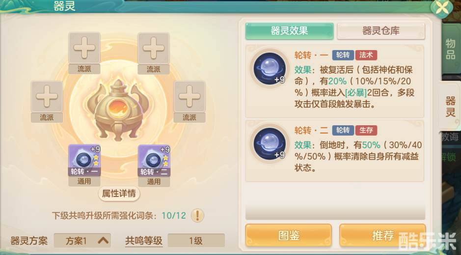 梦想世界器灵轮转,属于通用流派器灵,能够在持有者受击、被击倒或被复活时为其提供增益效果。兵刃加身时,卸力为守,踏风不退,蓄势待发。此器灵不教持器者主动杀伐,唯教其以伤铸甲,以败为薪,以死作桥,生生不息,战不休。下面和酷乐米小编一起来看看吧