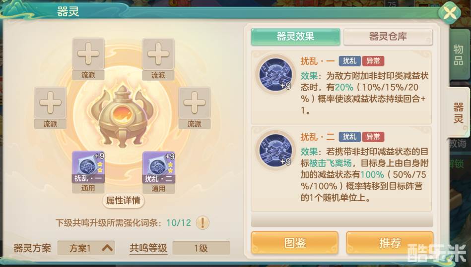 梦想世界器灵扰乱,属于通用流派器灵,能够通过影响敌方减益与增益状态变化扰乱战局,在强化控制与输出的同时,还能形成连锁削弱效果。下面和酷乐米小编一起来看看吧