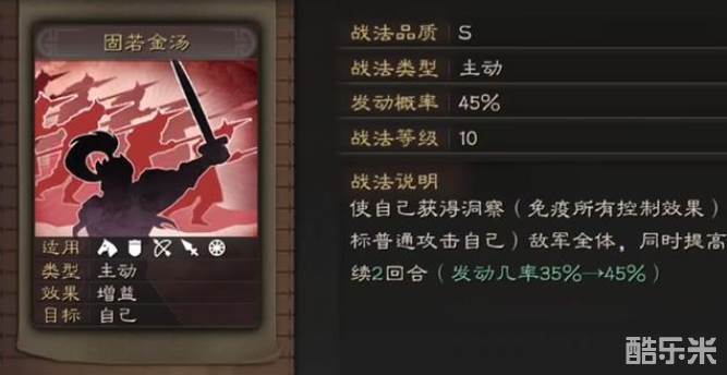 曹仁的自带战法固若金汤本身就带洞察和嘲讽,配合兵书简直如虎添翼。无战而胜提供的免伤效果让他开场更硬,铁甲专门对付菜刀队,守势则稳定提升全程防御。虽然这哥们输出不太行,但咱们本来就不是让他打伤害的,站得住才是王道。要注意的是他速度慢,所以别指望先手控场,老老实实当个沙包就行。