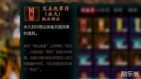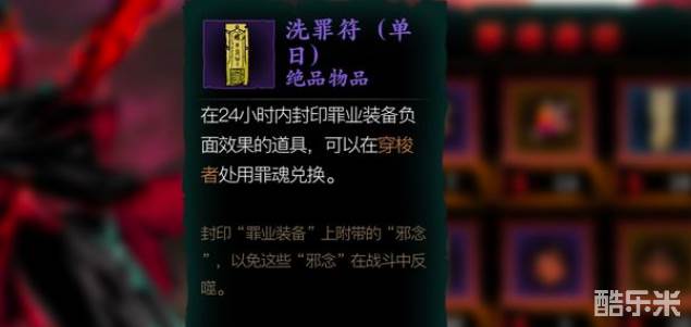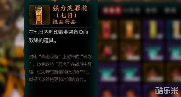 洗罪符的作用非常重要,它能暂时镇压罪业装备的诅咒效果。这些装备虽然属性强力,但会附带严重负面效果,比如反噬伤害或属性削弱。使用洗罪符后,装备的诅咒会被压制,让咱们能正常发挥它的威力。注意洗罪符分为单次、1天、7天和永久四种类型,根据需求选择合适的使用方式。