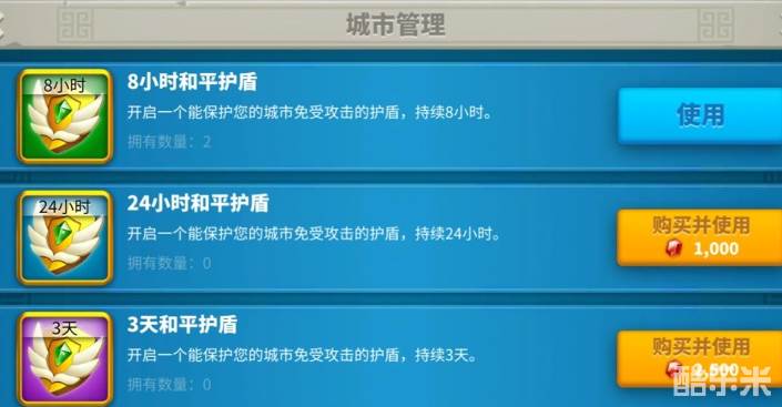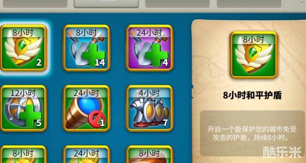 开启城堡护盾是保护咱们资源不被掠夺的关键操作。在主界面点击城墙图标,进入防御设置页面后能看到盾牌按钮,点击它就能看到护盾选项啦。和平护盾通常有8小时和24小时两种时长选择,根据当前需要选择合适的时间段。记住护盾开启期间无法主动攻击其他玩家,但可以安心采集资源和升级建筑。护盾快结束时会收到系统提醒,记得及时续上哦。下面和酷乐米小编一起来看看吧