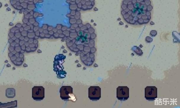右上角有着四个星星围起来的区域,锄头挖掘就可以得到一个金色核桃。雨天来到海湾就能看到一条美人鱼坐在岩石上,在日记残页9中也有着此处解密提示,玩家需要准备五个长笛块,依次放置在这五处石头上方。每个不同形状的石头都代表着不同音调,其中小石头代表音调一,大石头代表音调五,根据石头的数量,我们就能得到正确的音调排列。正确的长笛块音调就为2、11、9、5、7,长笛块本身就有着初始音调一,右键点击即为增加音调,所以实际需要点击的次数就为1、10、8、4、6。