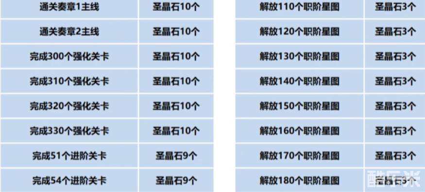 除了限时任务外,常驻任务也不容忽视。大家可以通过17项主线推进任务来获得170颗圣晶石,每完成一项任务就能拿到10颗,而这些任务是长期存在的,可以慢慢完成。而且,这还不算强化关卡的奖励,如果你能挑战并完成所有强化关卡任务,还有可能再获得最多40颗圣晶石。此外,官方还因为系统调整发放了120颗补偿石,当然,这也是在版本更新后才有的奖励,一并算进来,真的是超值了。