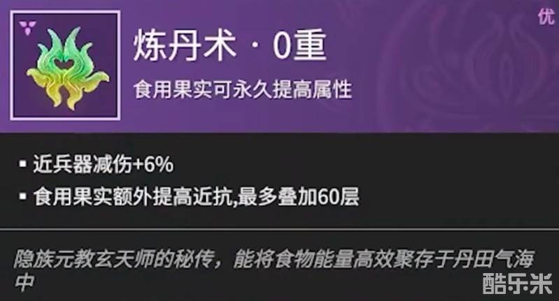炼丹术魂玉是刘炼的核心魂玉之一,这个魂玉初始提供6%的近战抗性,每收集一个果子还能额外增加0.3%的抗性,最高可叠加60层达到24%的近战抗性。配合刘炼的驭金闪化磁技能,能大幅提升生存能力。不过要注意这个效果对金霸体敌人无效,更适合喜欢防守反击打法的玩家。