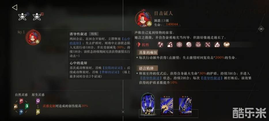 每个回合结束它会进行形态切换,在娜娜形态杀掉才能完成执勤标准。 它总共有三波血条,我方在回合结束前可先打空一条。当前状态被清空血条后,下个阶段这个形态就不会再出现。我方在金伯利以及魅魔形态下分别打一条血,这样就能维持住娜娜的形态。第三小关是目击者的证言,小boss召唤费解的证词才能达到执勤标准。也就是说要等它开两次大,第一次的证词是狡黠。在此期间不能打掉它的盾,等到第二次开大证词才会变成费解。